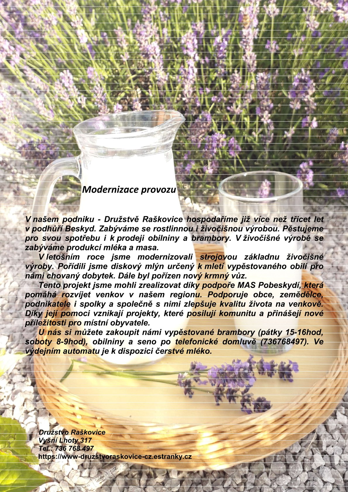 tel.: 736 768 497 www-druzstvoraskovice-cz.estranky.cz facebook Družstva Raškovice